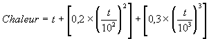 Ainsi pour une température de 150°, la quantité de chaleur correspondante est de 150,4510125 Kcal.