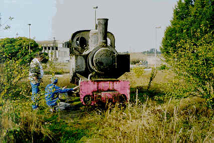 | Locomotive 030T Decauville de l’usine des Ciments d’Origny Ste Benoîte lors de note visite du 12 Septembre 1998 avec Michel Juishomme et Daniel Le Guilloux (photo Michel Juishomme). | |
