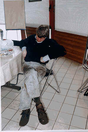 | On comprendra pourquoi les travaux avancent à ce rythme, regardez les deux mains gauches et les deux mains droites de Daniel Le Guilloux. | En revanche, certains cassent le rythme de travail. Évidemment à 3g les travaux sont un peu retardés. |