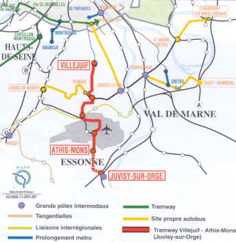 Tramway Villejuif - Athis-Mons - Juvisy-sur-OrgeLa maison de la RATP proposait courant Décembre un stand d'information sur la future ligne de tramway Villejuif - Athis-Mons - Juvisy-sur-Orge. Des expositions ont été organisées mi novemlbre 2000 dans les villes concernées : Villejuif, Vitry-sur-Seine, L'Haÿ-les-Roses, Thiais, Chevilly-Larue, Rungis, Orly, Paray-Vieille-Poste, Villeneuve-le-Roi, Athis-Mons et Juvisy-sur-Orge, afin d'informer et de recueillir les avis et observations du public.