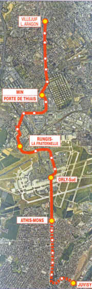 Soutenu par l'ensemble des collectivités locales, ce projet a été retenu au contrat plan Etat/Région 2000-2006 pour un montant de 1200 MF, dont 180 MF financés par le Val de Marne. La première phase de réalisation est prévue entre Villejuif et Athis-Mons. Elle permettra la desserte d'un pôle d'activité de 70000 emplois. Cette ligne permettra une amélioration des déplacements entre les départements du Val de Marne et de l'Essonne et sera en liaison avec la capitale. Les correspondances prévues sont : Villejuif Louis Aragon (M7) MIN de Rungis (TVM), Rungis La Fraternelle (RER C) et Juvisy (RER C&D).