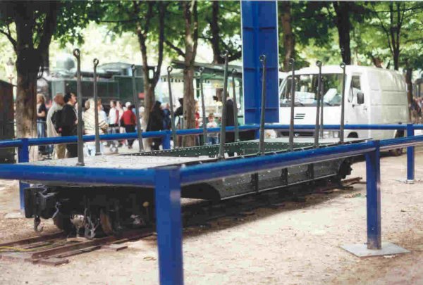Le matériel exposé est une plate forme d’artillerie Péchot modèle 1888 entièrement d’origine, seule manque la vis serre freins. Créée à la base pour le transport des obus d’artillerie elle aura servi à effectuer aussi le transport de blessés, de permissionnaires, de panneaux de voie, de ravitaillement.