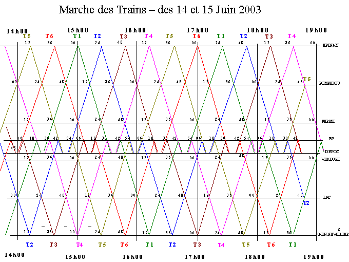 Chaque intervalle (section entre deux stations) ne peut recevoir qu'un et un seul train sur la