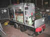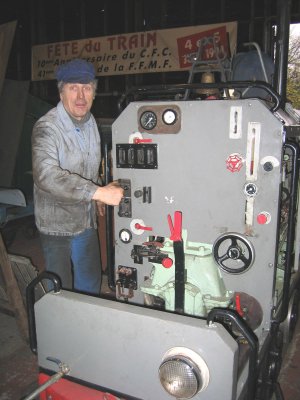 Après la Bouillotte à compte tour électronique (voir LVDC n° 77 et précédent), voici que Vincent, sans doute jaloux de l'installation de Marc-André et du nombre de robinets de sa machine, installe batteries, démarreur électrique et phares sur le petit locotracteur O&K ; son "bébé" puisqu'il s'est personnellement occupé de redonner vie à cet engin longtemps resté dans sa plus simple expression (châssis et moteur). Et dire que tout cela est fait avec des bouts de portails, des poulies de lave vaisselle, des appliques d'autocar, des bouts de tuyau d'arrosage, un alternateur de voiture, un démarreur de camion, des chutes de bois, etc... j'en passe et des meilleurs ! Que ceux qui penseraient que ce n'est qu'un assemblage de bouts de ficelles et de tôles tordues ne s'y trompent pas, car il n'en est rien ; au contraire ! Et ça fonctionne très bien ! Que ceux qui ont quelques doutes viennent vérifier sur place en Juin 2004 lors des 20 ans du CFC ou même avant ; ils seront toujours les bienvenu.