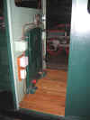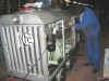 Profitant d'avoir la meuleuse avec une brosse, Marc-André est venu solliciter mon aide pour décaper les tôles des ouvertures inférieures de la caisse à eau centrale de cette machine. Ce fut chose faite rapidement, suivi de leur remontage au joint bleu. Puis ce fut le tour des pipes de communication.