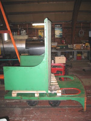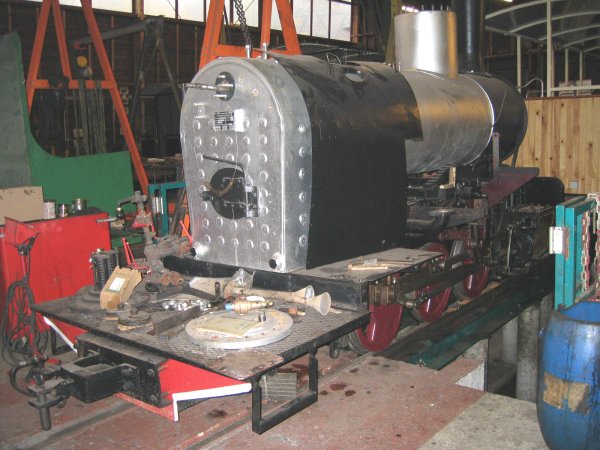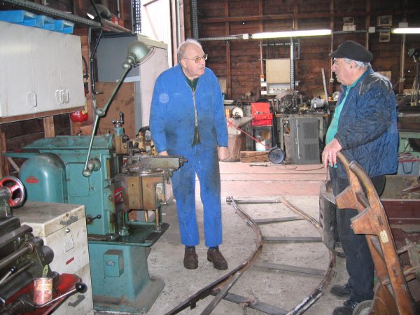 de Grande-Bretagne, nous avons entrepris de stocker sur la voie Decauville (8 bis) le locotracteur Schöma dont la restauration n'est pas prévue avant longtemps vu les chantiers en cours. Cette opération nécessita de retirer, dans un premier temps, tout le matériel devant servir avant ; soit dans le cadre d'une remise en état soit pour une animation spéciale (train du père Noël, train de bennes...). C'était sans compter les difficultés dues au grand porte à faux et à la faible garde par rapport au sol, mais après moult efforts, gouttes de sueur, "conseils des sages" (Gilbert, Vincent, Marc-André, Freddy et moi même) sur la meilleure manière de procéder, ripage à la barre à mine, etc... le "petit" Schöma pris place au fond du dépôt.