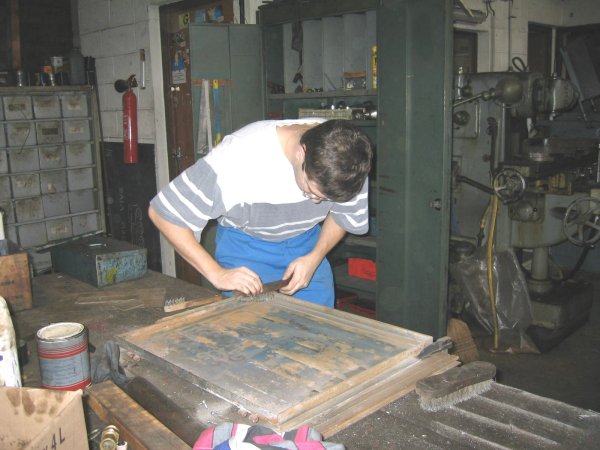 voir leur dynamisme. Aujourd'hui c'est Thibault qui a pris en charge le décapage et la peinture de portes latérales du capot moteur. Du beau travail.
