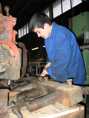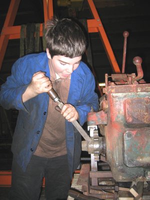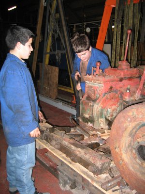 Depuis quelques temps, Gilbert, Jean-Marie et les autres habitués ne sont plus les seuls à travailler à la remise en état de cet engin. En effet les trois nouveaux membres (Thibault, Jean-Baptiste et Thomas) leur apportent bien volontiers leur contribution. Cela fait plaisir de