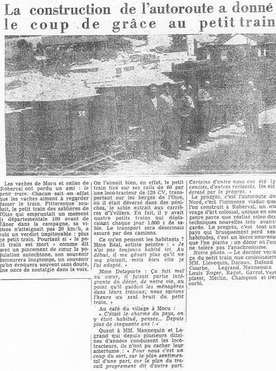 construction de l'Autoroute et remplacée par des camions. Année triplement