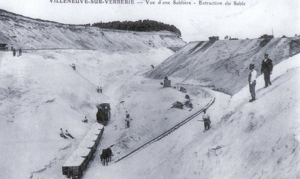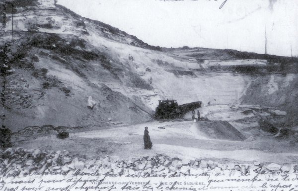 en déchargement dans la carrière. Cette carte postale est datée du 25