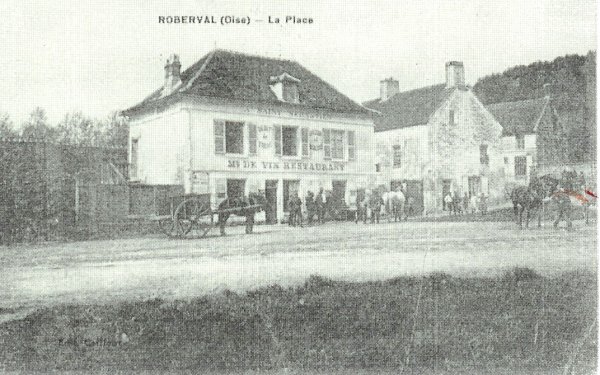 à notre gauche la place du café de Roberval avec ses nombreux attelages hippomobiles