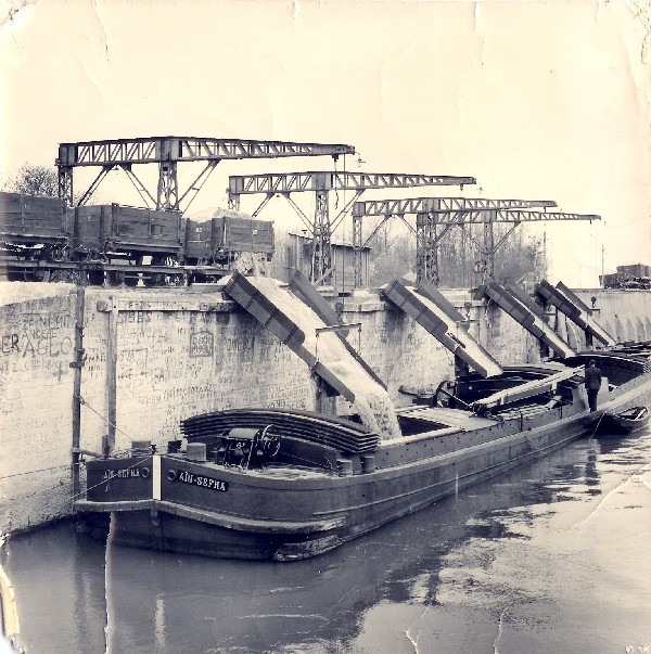 vider notre chargement de sable dans une péniche avant de reprendre le chemin inverse.