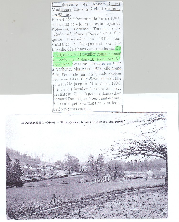 Pontpoint, la place et le café. Noter en bas à droite, la voie du tacot. Le café était tenu par le grand-père de Patrick De Decker comme l'atteste un article de "Roberval notre village daté de 1996. |