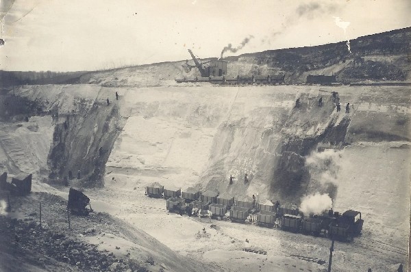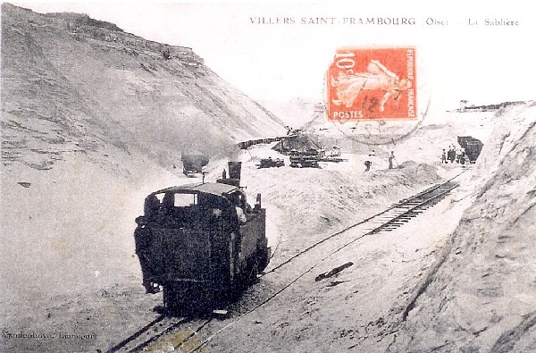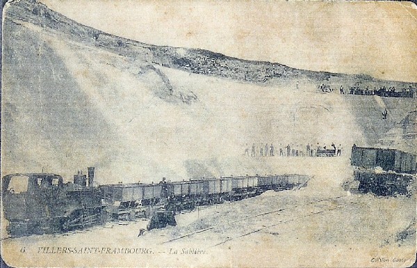 Carte postale envoyée en 1912. Carrière de Villiers Saint Frambourg. Locomotive manoeuvrant. La loco est peut-être celle qui était appelée Attila. |