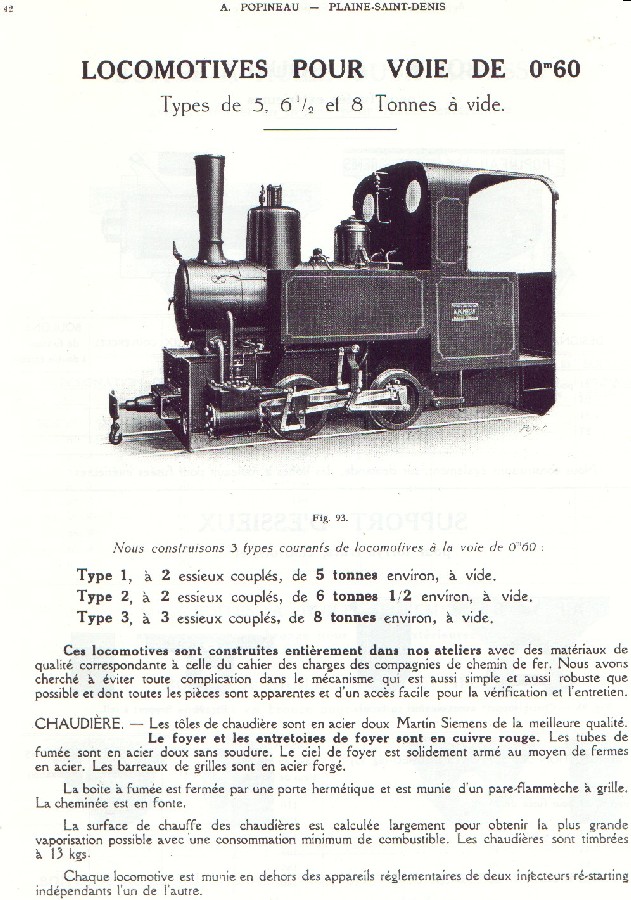 Il y avait une machine à vapeur Popineau surnommée " La Puce"dont on ignore le type.