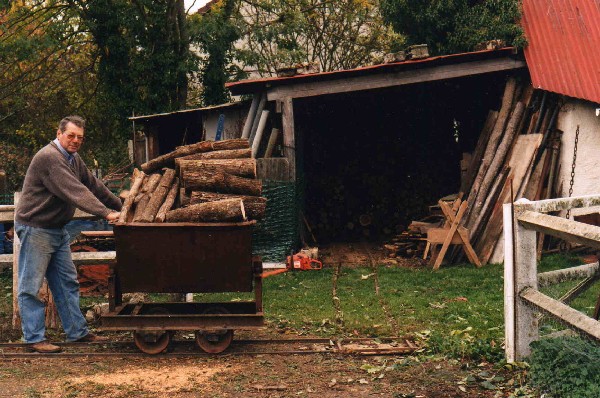 Voilà l'histoire de ce wagonnet. Passionné de voie étroite et ayant travaillé sur le réseau d'Alix Combelle à coté de Mantes, j'ai reconstitué cette benne en utilisant le châssis de la petite Decauville (imitation) que j'avais construite en 1971 pour rouler sur le réseau d'Alix...