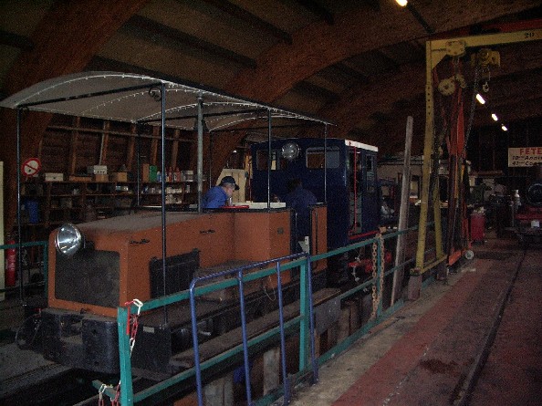 La Campagne 0B0-05 manoeuvre le Plymouth 0B0-09 sur la fosse pour pouvoir monter la tuyauterie de l'air comprimé. |