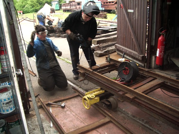 Opération de soudage des traverses désolidarisées. |