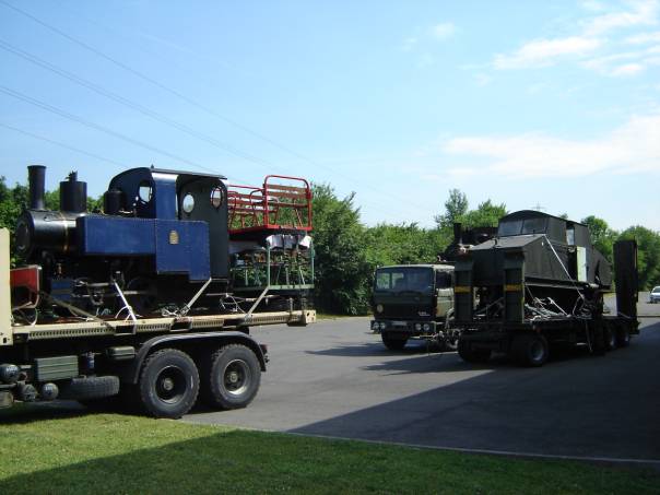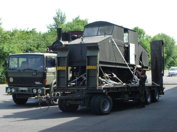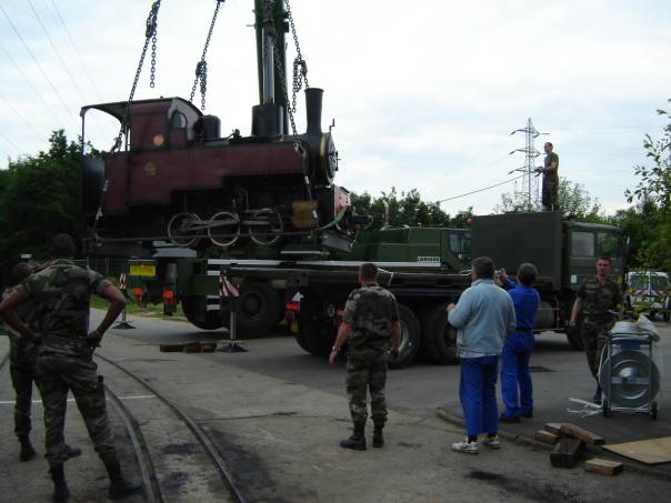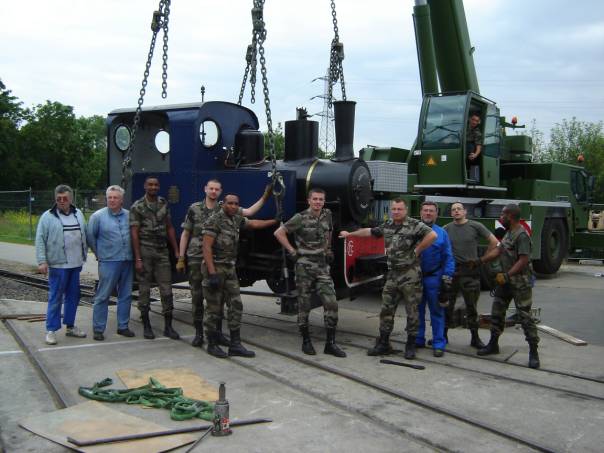 Nous avions lié quelques chaleureux contacts avec le Capitaine Desaulle ces dernières années, contacts ayant abouti au prêt de l’unique exemplaire du tracteur Crochat. Plusieurs de nos manifestations ont vu la présence de cet engin impressionnant et attisant la curiosité du public. Le temps passa et, l’heure de la retraite sonnant, Brice Desaulle laissa sa place au Capitaine Colibeau, sympathique et enthousiaste organisateur des "Portes-Ouvertes" du 5ème Régiment du Génie 2005 au camp des Matelots à Versailles. La question se posa donc du rapatriement du Crochat sur Versailles. L’aller avait été assuré avec un superbe ensemble routier de type semi-remorque porte chars pour lequel nous avions érigé une de ces estacades faites de traverses et coupons de rails divers dont nous avons le secret !