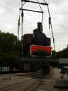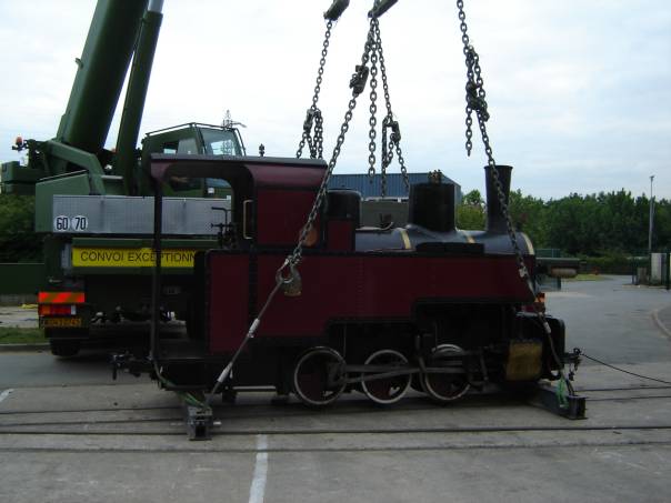 A mesure que le câble s’enroulait et que les chaînes se tendaient la pression montait dans l’assistance. Il fallut reposer pour caler sous les longerons afin d’obtenir une assiette aussi convenable que possible. La marge de manœuvre n’était pas grande, à l’image du peu d’espace disponible entre les bogies. Fort heureusement l’engin à vocation plutôt ferroviaire qu’aérienne atterrit à bon port sur le plateau de la remorque.