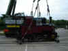 Le grutage débuta par l’engin le plus lourd, 14 tonnes environ pour le Crochat. Le moyen de levage envisagé devant faire appel à deux fortes poutres, il s’agissait de les placer de manière à équilibrer l’ensemble, tâche délicate puisqu’il était difficile de déterminer le centre de gravité.