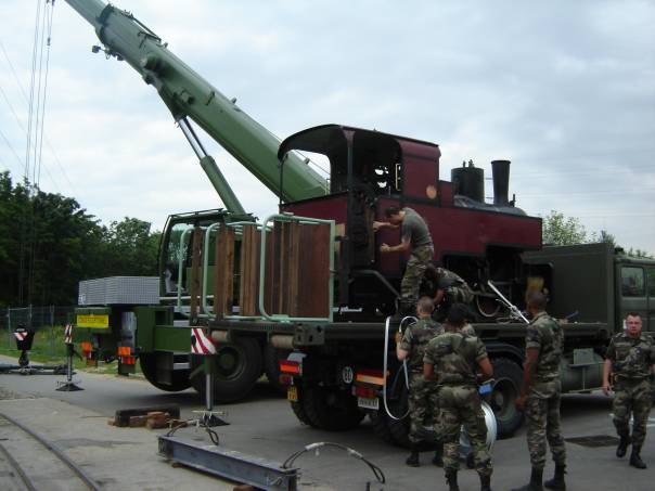 Le poids n’était pas un obstacle, la grue ayant une capacité d’une quarantaine de tonnes, il y avait de la marge. Il est à noter que cet engin de marque Liebherr fait partie d’un lot de quatre dernièrement acquis par l’armée. Elles ont été modifiées afin d’être aptes au chargement sur wagon surbaissé, leur force de levage d’origine étant d’environ 54 tonnes et leur bras télescopique ayant été amputé d’un coulissant.