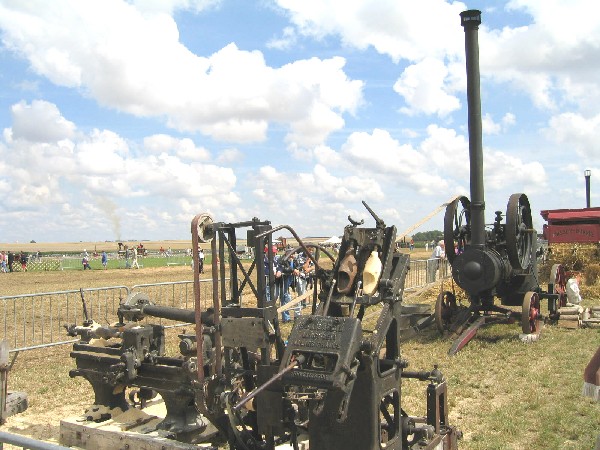 Parmi les machines fixes, une scie à planches et une saboterie étaient toutes deux entraînées par leur locomobile respective. Ce qui me valut de retrouver Jean-Marc un ami du Chemin de Fer du Val-de-Passey… et de récupérer quelques beaux copeaux de bois pour mon filtre à huile.