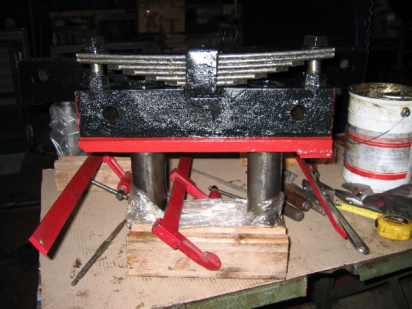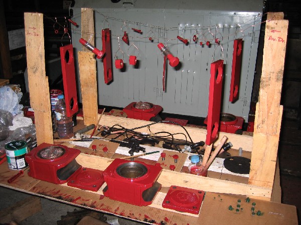 Les boîtes d’essieux, boulons et plaques de garde en peinture (25/08/04). |