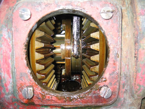 Gros plan sur les pignons coniques de l’inverseur le 19/08/04. |