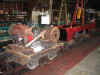 Lundi 16 Août : mesure des goujons de gueuse d'attelage. Ils sont quasiment tous différents !!! Soit qu'ils soient tordus et rongés par la rouille, soit qu'ils aient été remplacés par un boulon d'éclisse de voie normale, soit ... qu'il n'y avait rien d'autre lors du montage de ces gueuses d'attelages ? qui ne semblent décidément pas être d'origine. Démontage au chalumeau des goujons cassée (par allongement en soudant dessus un bout de rond pris en sandwich entre deux bouts de cornière créant des plats). Meulage de la peinture du châssis brûlées lors de cette opération et peinture ; ainsi que les boulons de fixation des gueuses d'attelage. Pour terminer cette chaude journée : déblocage du pignon de sortie de boîte de vitesses avec l'aide de Vincent.
