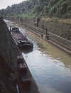 Péniches et tracteurs entrant dans le tunnel d’Arzviller côté Lorraine. Photo Jacques Defrance - 18 août 1972 |