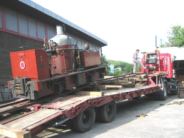 Mercredi 25 Mai : Opération chargement des deux machines à vapeur de Bligny venues spécialement pour le centenaire de la Bertha.