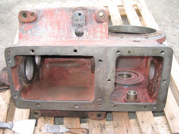 Après un petit interlude, histoire d'assurer un train spécial, je m'attaque au grattage de la peinture du carter de boîte. Ca occupe bien une fin de journée ; et en plus je découvre des cales de réglage pour le couple conique d'inverseur !