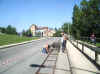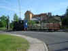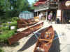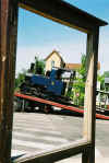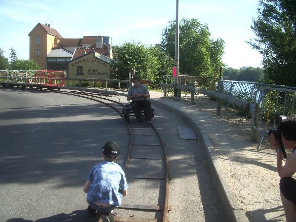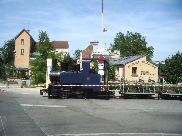 La Bouillote devant la Maison Fournaise sur l'île des Impressionnistes. Pour une fois le train a été déchargé avant la pose de la voie. Les premiers coupons ont été minutieusement alignés. |