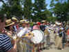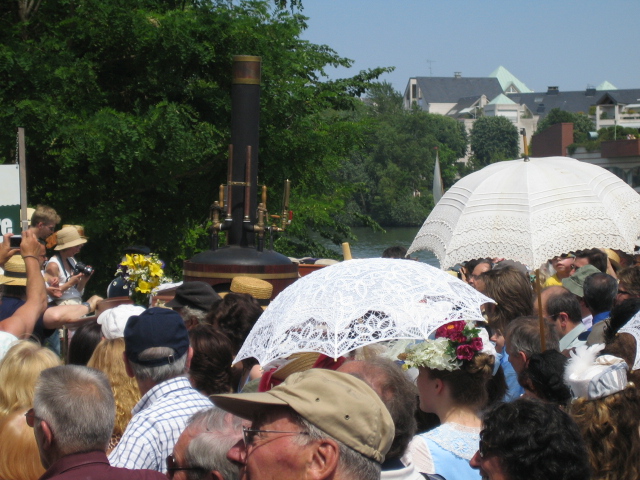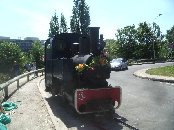 Le grand jour, j'étais à pied d'œuvre à 8 heures pour allumer la machine, il faisait déjà chaud au soleil, puis Vincent et Freddy sont arrivés pour prendre en charge le train aidés de Guy B. Deux convois exceptionnels ont eu lieu : le premier pour l'harmonie du Vésinet dont la résonance sous le pont de Châtou s'est fait entendre et un autre pour un groupe en costumes de la Belle Époque qui anime l'association "Art et Chiffons".