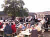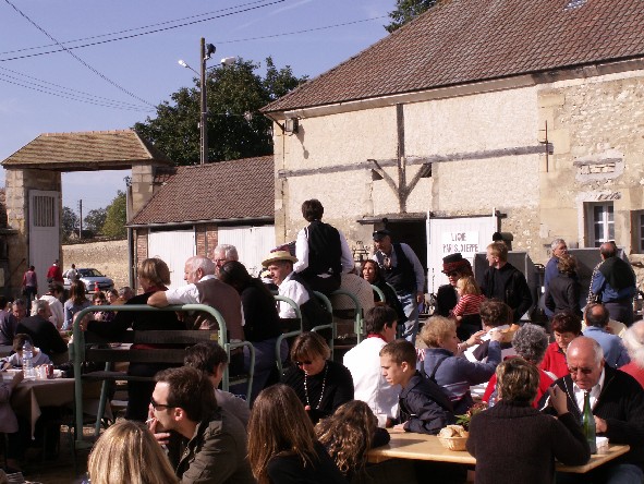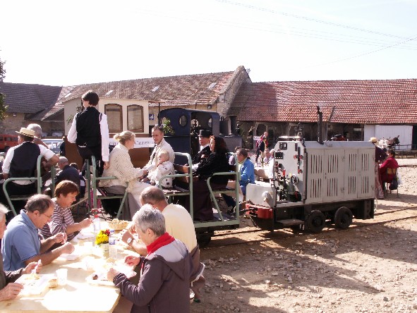 Accordéon sous le soleil, cidre et vin dans les verres, le train serpente entre les tables à l'heure du déjeuner. |