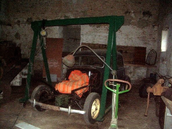 voiture, dans une fosse, les bras en l’air et le dos en extension toute