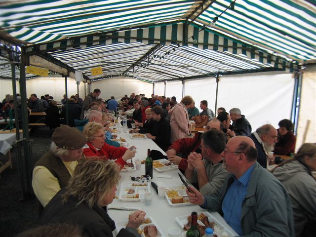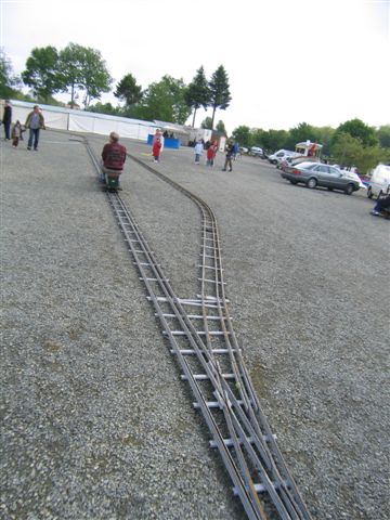 Comme depuis 15 années les repas sont gratuits pour les exposants et leur Epouse (~~ 3.000 visiteurs). Un circuit de 270 m en 5" et 7"1/4 permet de bien circuler avec voie d'évitement ; rotonde de distribution de locomotives. |
