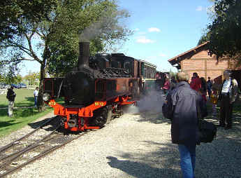!». Ce qui n’est d’ailleurs pas une obligation, car les visiteurs peuvent prendre le train suivant, selon que leur visite du musée est terminée, ou non, ou alors, quand il circule, prendre l’autorail Crochat quand il assure un train supplémentaire, annoncé par son pin-pon désaccordé et si caractéristique, ce après emprunt du triangle de retournement, étant unidirectionnel. Coup de sifflet strident du chef de train, qui fait ici office de chef de gare, réponse du sifflet de la locomotive, et c’est reparti pour terminer ce premier train, en refaisant tout à l’identique, mais en sens inverse !