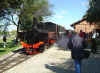 Non mais, vous vous rendez compte !?! On arrive à un nouveau PN et, juste après, on quitte le voisinage de la route, pour arriver à Bellébat, terminus d’un voyage de 4½ Km. Le premier train ne prend pas la boucle de contournement de ce grand terrain, arboré et aménagé pour le pique nique, avec parking dans ses emprises. On peut, si l’on est venu en voiture, s’installer, et on passe à table, en attendant l’arrivée du premier train, que l’on peut emprunter ici pour redescendre sur Pithiviers, le temps de la visite du musée. En effet, après arrêt le long du quai, coupure de la machine et de la rame, elle prend la voie d’évitement, et repart vers l’arrière du train, afin d’aller chercher le wagon bar, déjà dételé, qui va être positionné de l’autre côté de la gare, près du triangle américain de retournement.