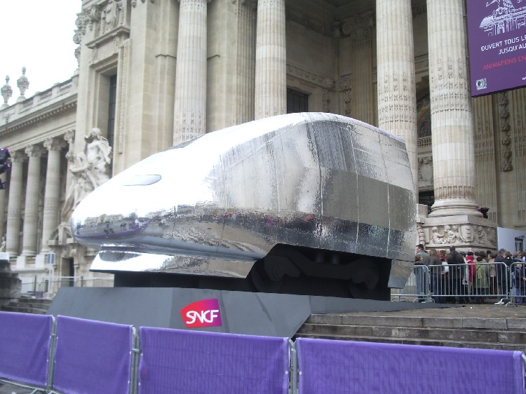 sculptures magistrales : la 150 P 13 de 1942, la BB 9004 de 1955, le TGV de 1981