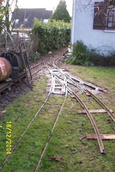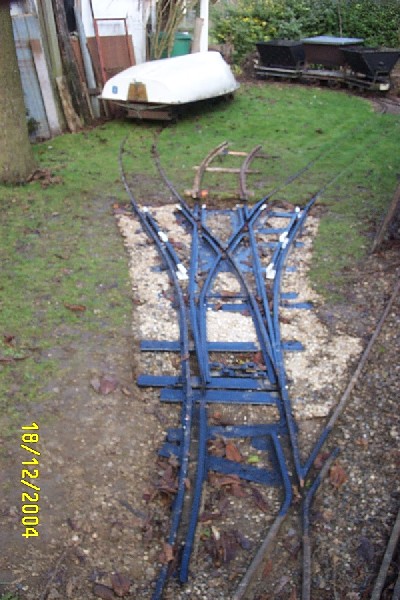 5 aiguillages, dont un beau triple et un petit symétrique. Une plaque tournante portable, et une autre dans un cuvelage en fonte.