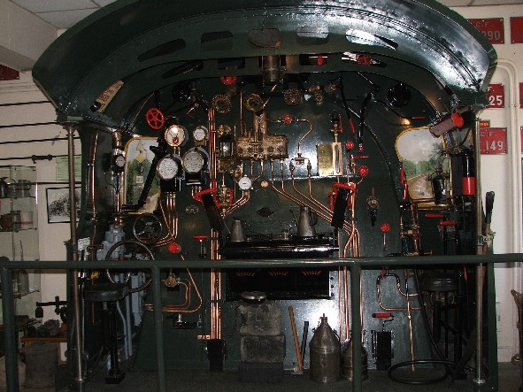 Une salle latérale présente les postes de conduite des engins à moteur thermique ou électrique comme par exemple celui d’une 2D2 ou d’un autorail.
