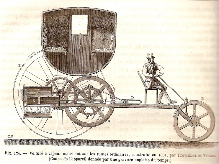 voiture à vapeur de Threvithick et Vivian construite en 1801 roulait sur
