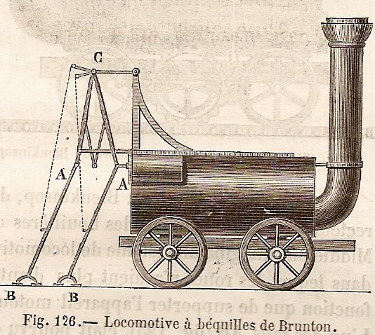 1812, la locomotive à béquilles de Burnton en 1813 dont les pistons
