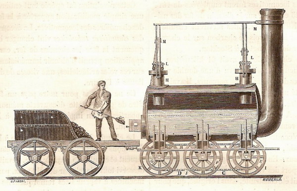 1814, George Stephenson sortit sa première véritable "locomotive à
