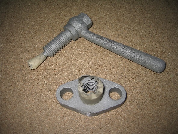Frein : Décapage et peinture de rondelles neuves pour la timonerie de frein, de divers boulons et d'un petit volant à trois branches (proche de celui visible sur la gravure d'un document constructeur) pour remplacer la ''manette'' d'accélération bidouillée avec un décompresseur.