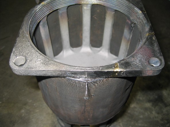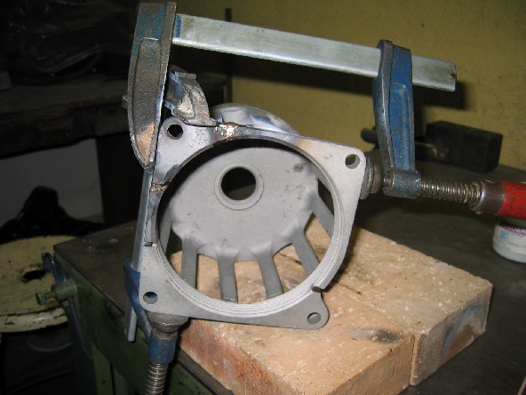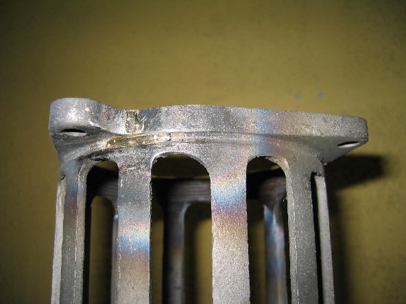 En Avril : Réparation de la cartouche de filtre à huile cassée : meulage de préparation des congés de soudure et brasure argent du morceau cassé et des fissures.