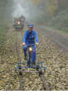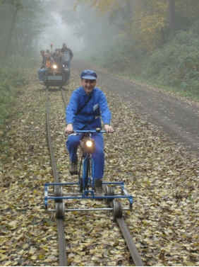 À Ramsen en 2008, dans la forêt. Denis sur son mythique vélorail international. |