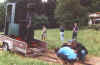 Déchargement de la machine d'Andréas au Val de Passey le 04/07/01 ; une rencontre clé. |